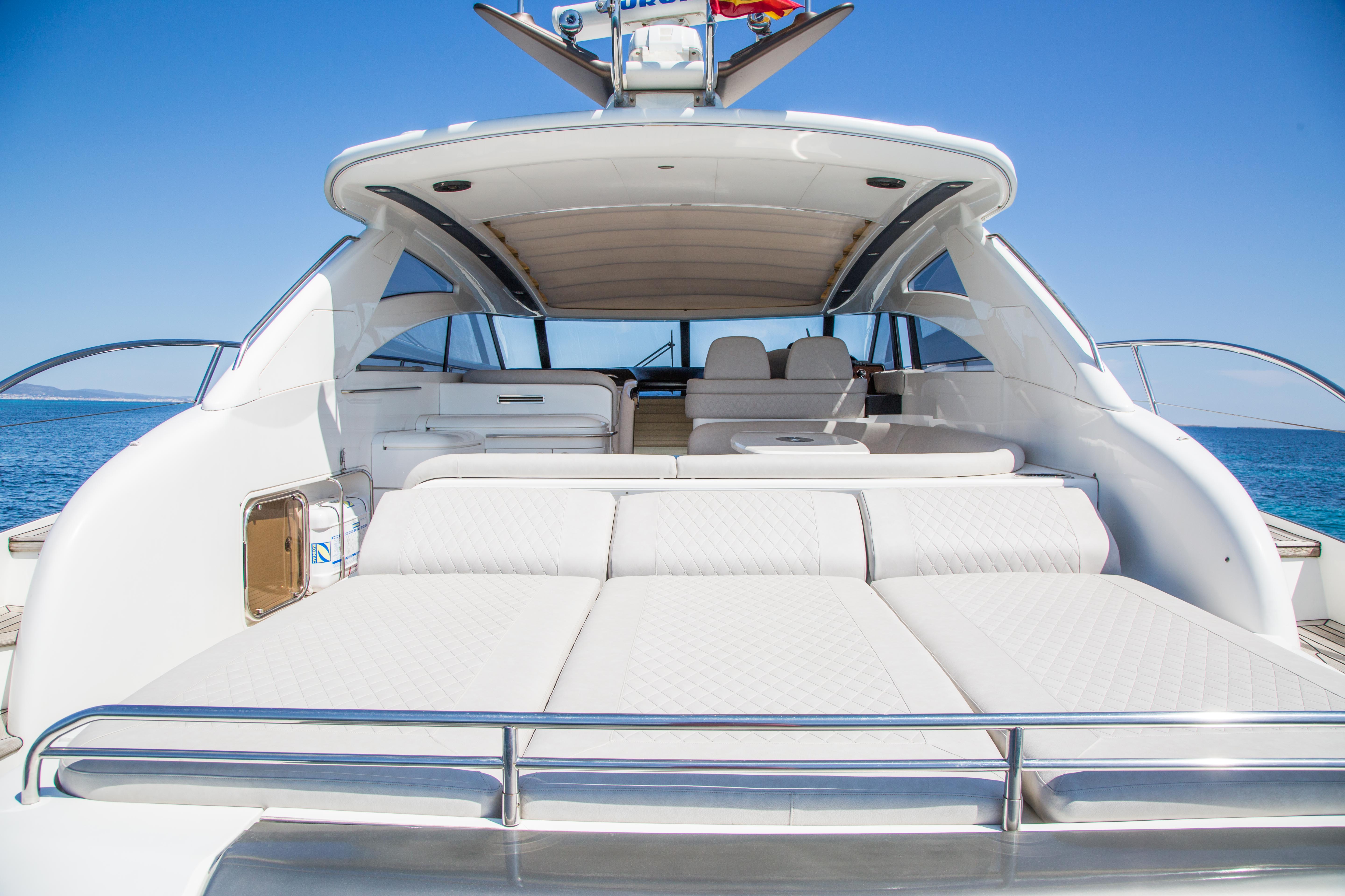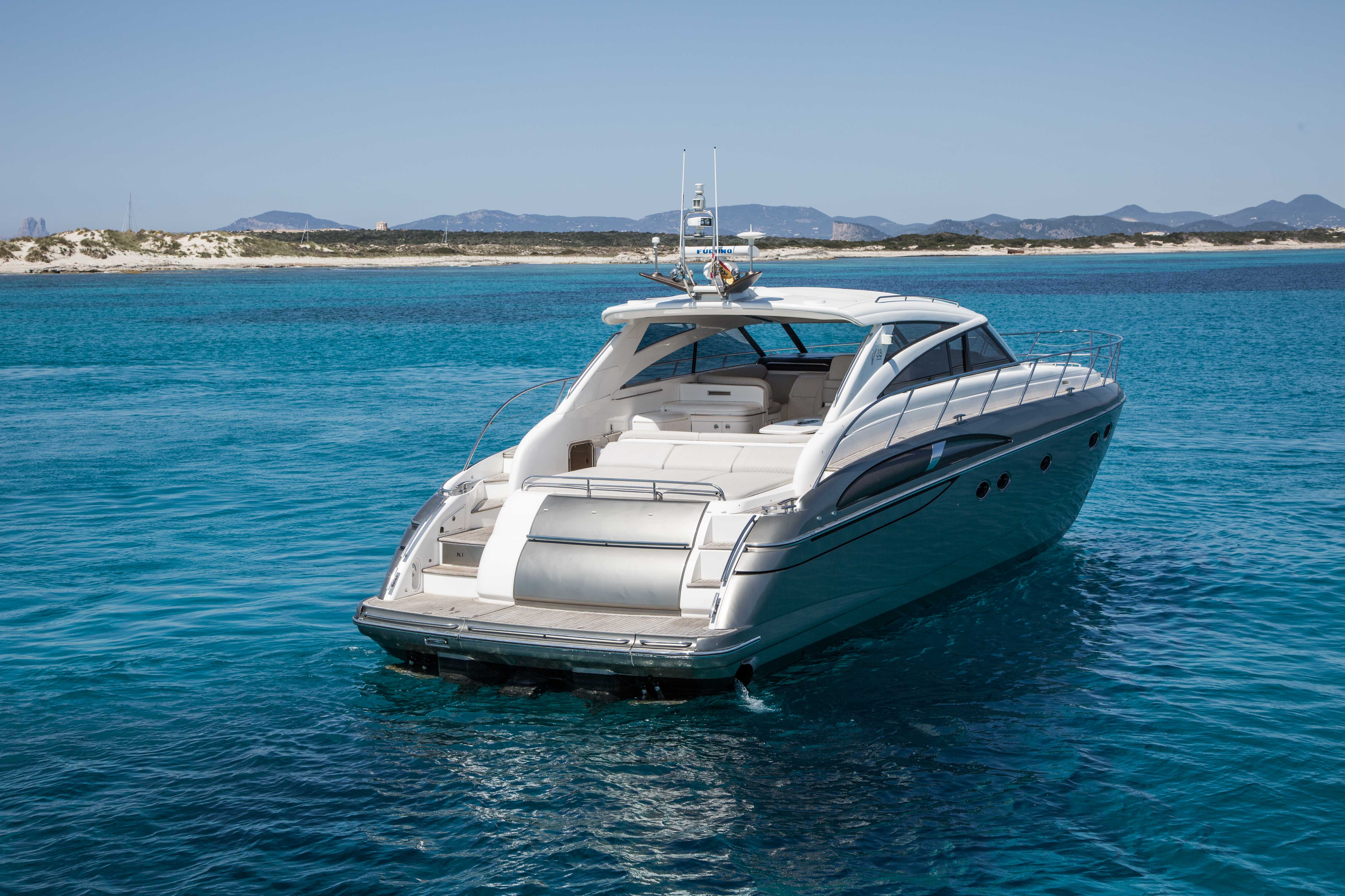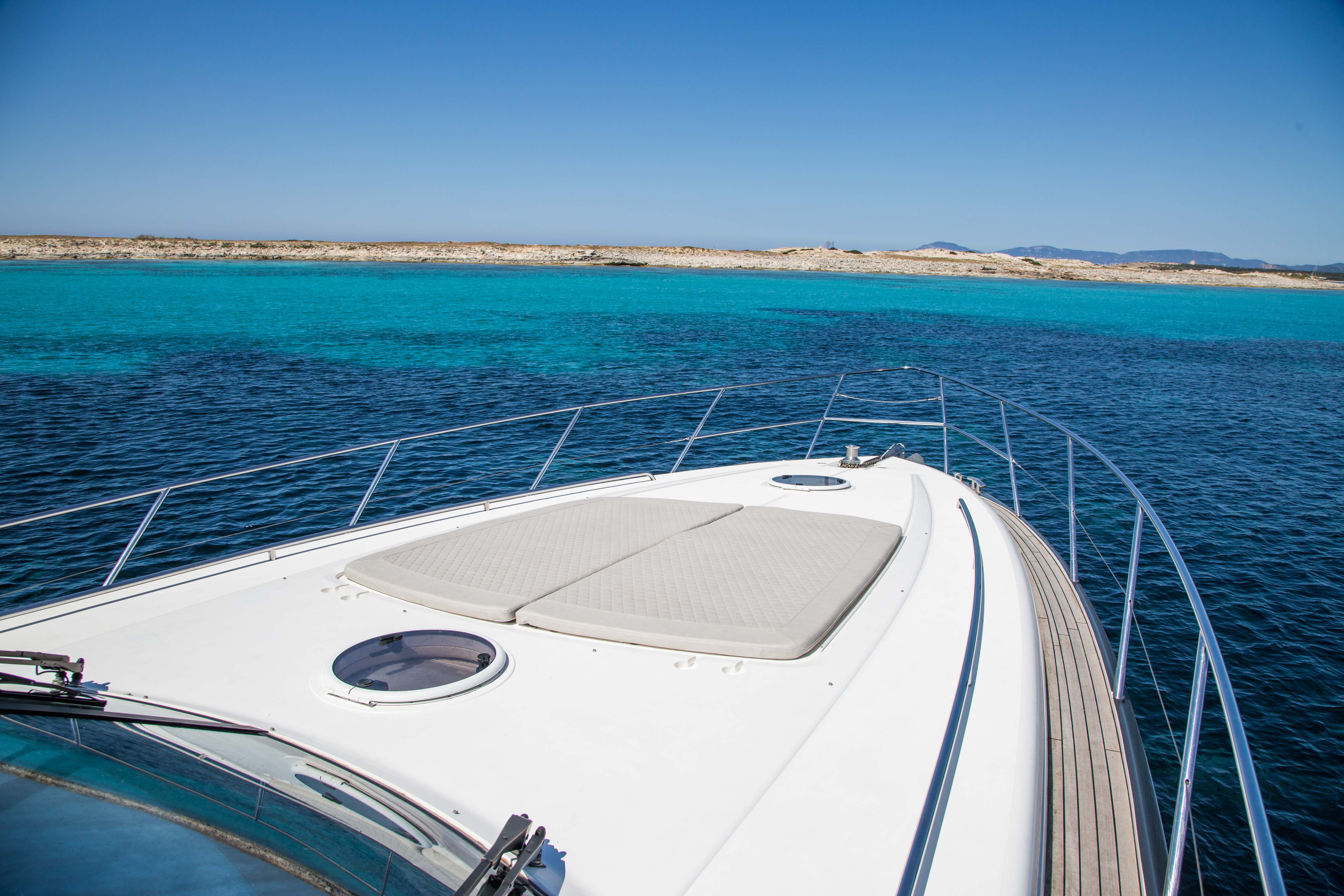 Finished to the highest of standards, this powerful speedboat offers luxurious interiors and exteriors for exploring the Pityuses in style. The spacious cabins – two doubles and one twin – and modern bathrooms make it a great option for overnight charters. You will never want to leave!