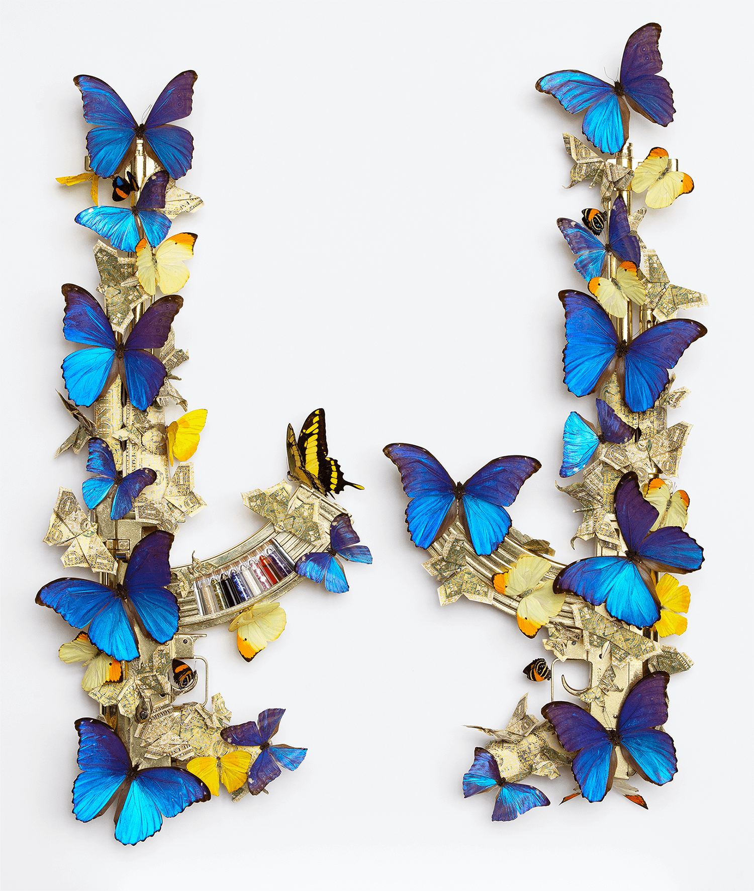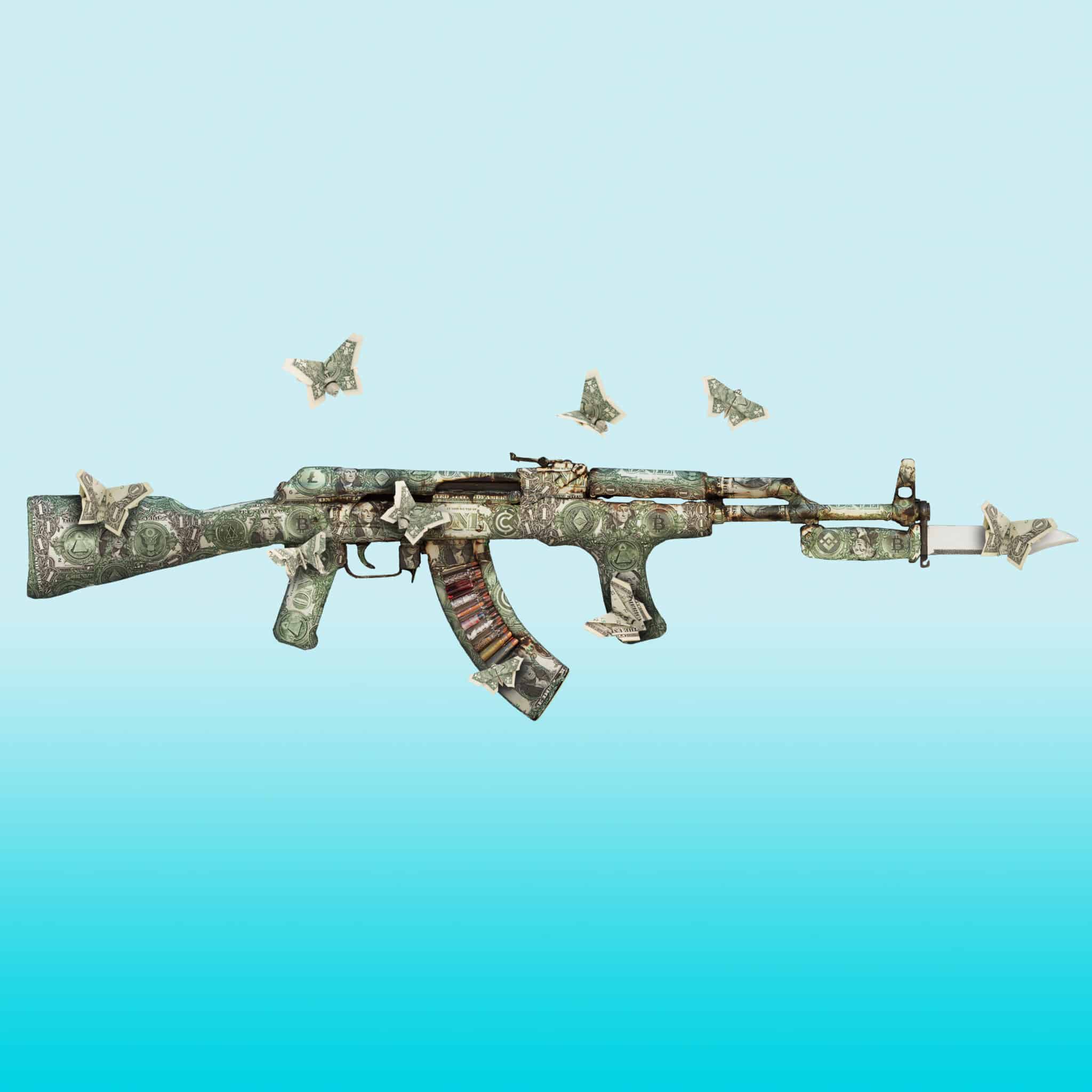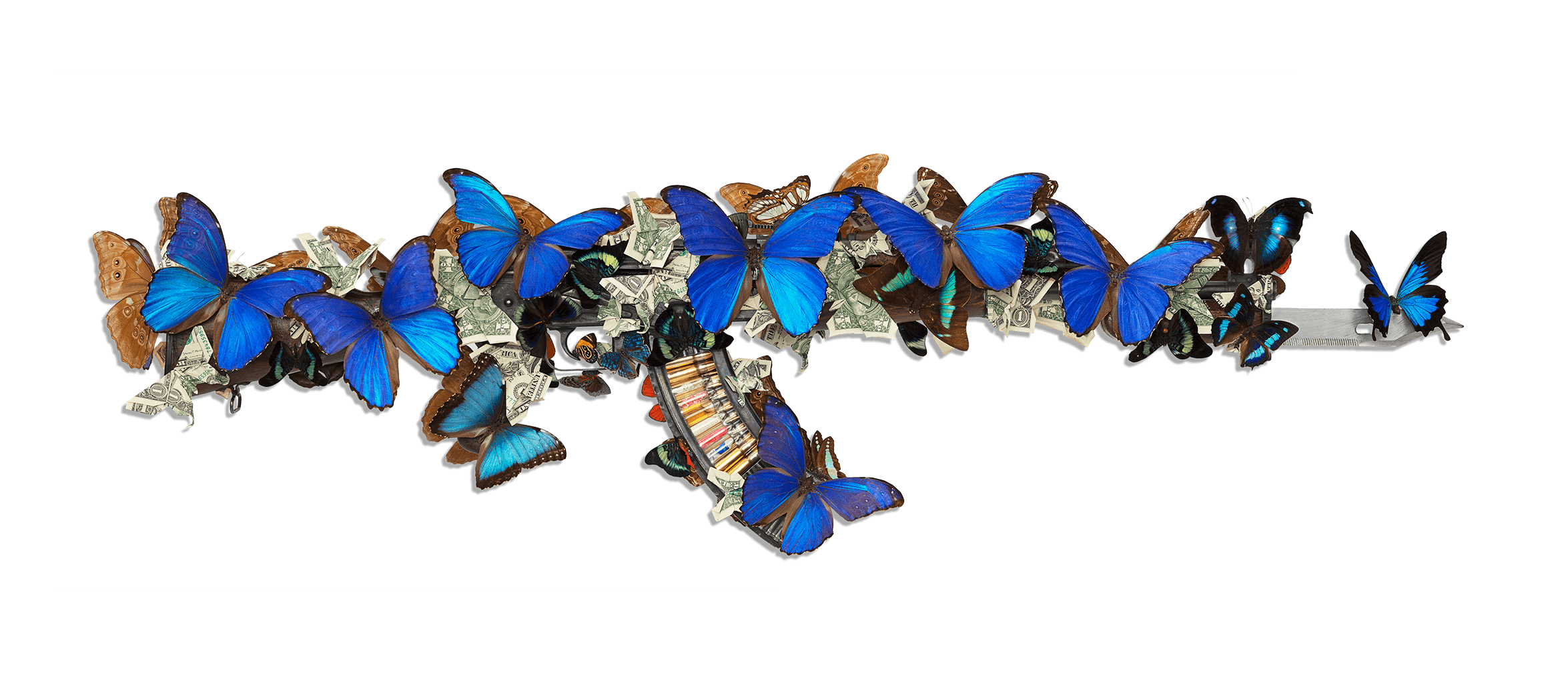 Blue Butterfly and Dollar Origami AK-47 (Sculpture)