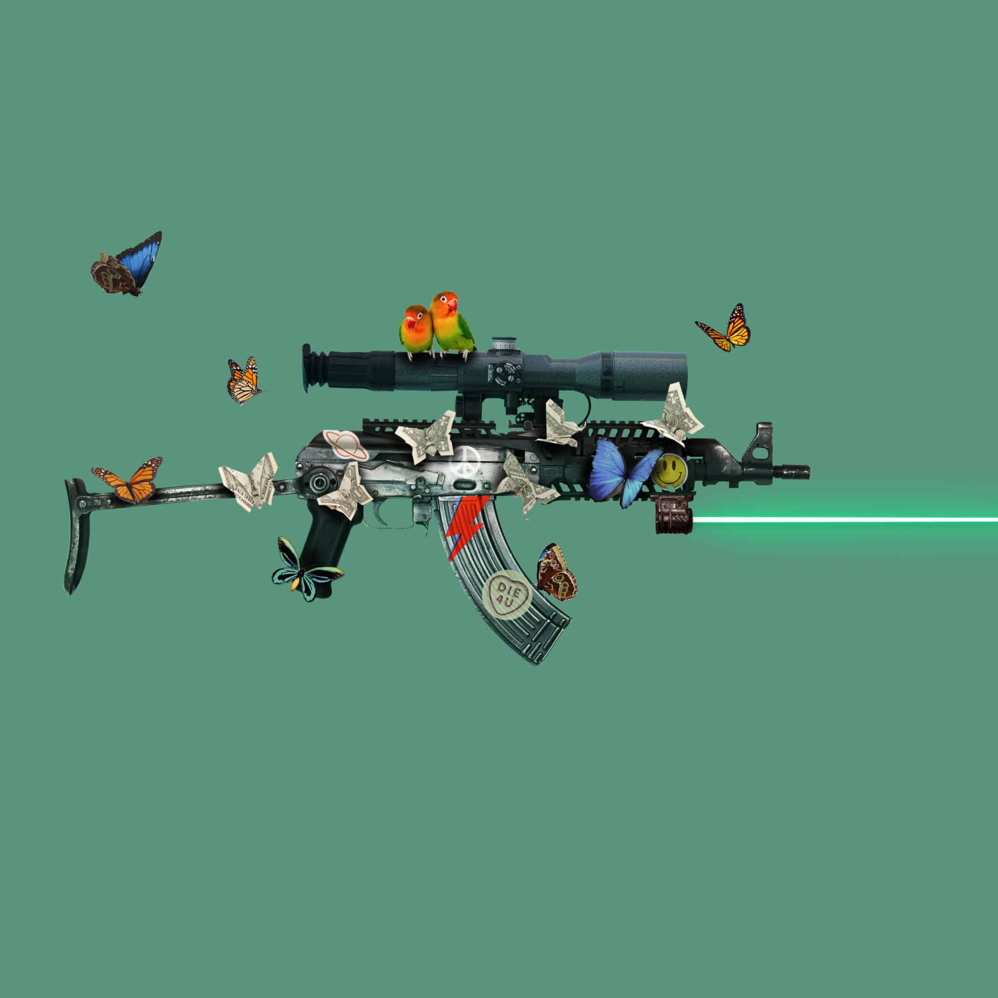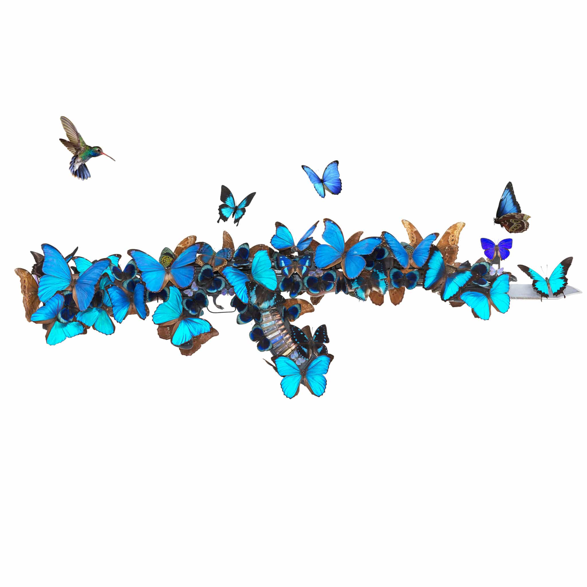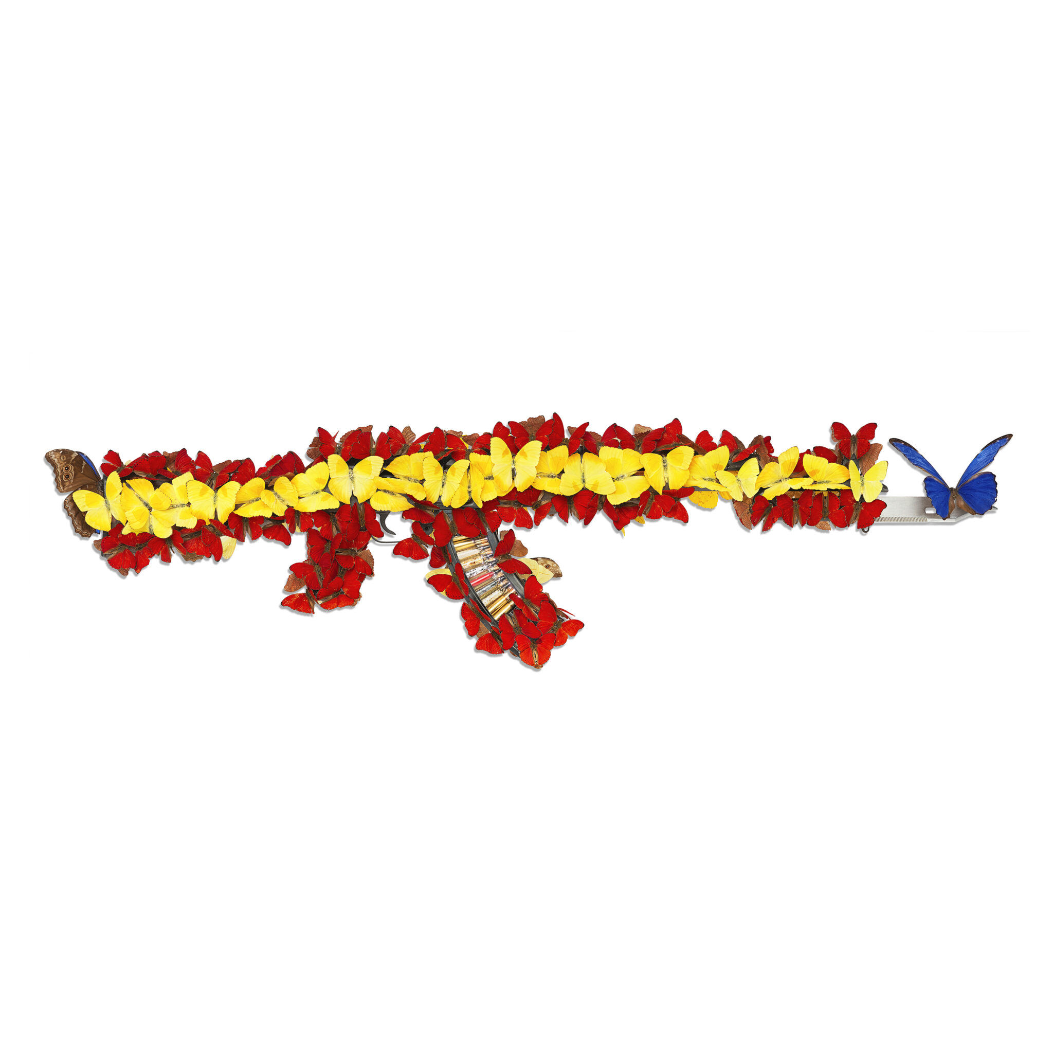 Blue Butterfly and Dollar Origami AK-47 (Sculpture)