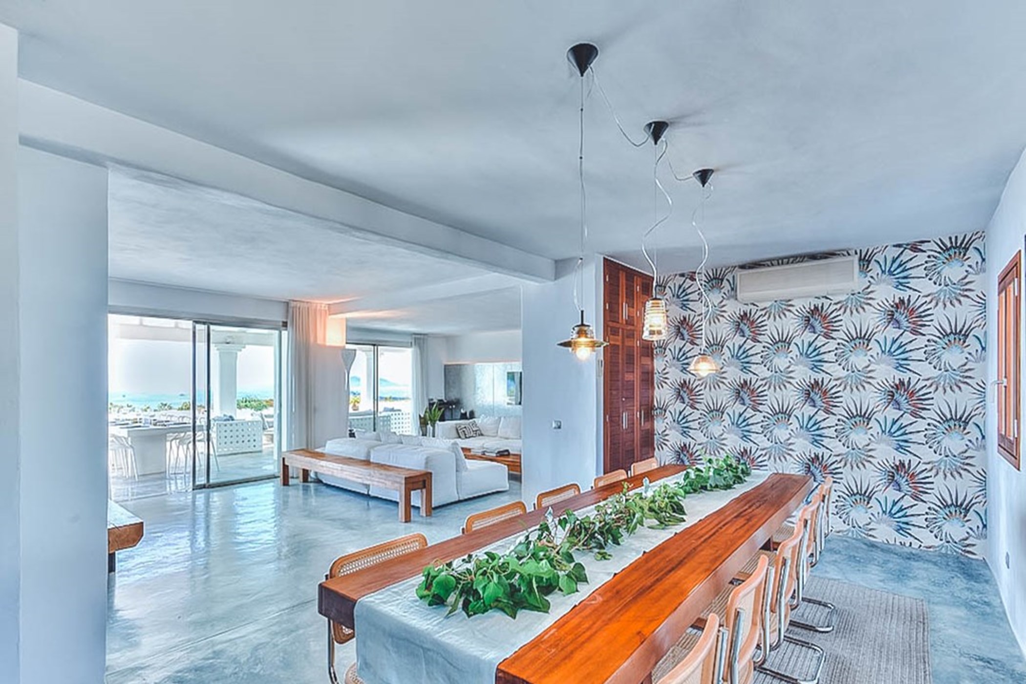 The living areas of Can Nala feature polished cement floors and are tastefully furnished with modern fixtures and fittings of the highest standard. The villa boasts a fabulous fully equipped kitchen, a spacious open-plan lounge, and divine dining areas that open out onto the terrace, allowing you to fully embrace the stunning surroundings.