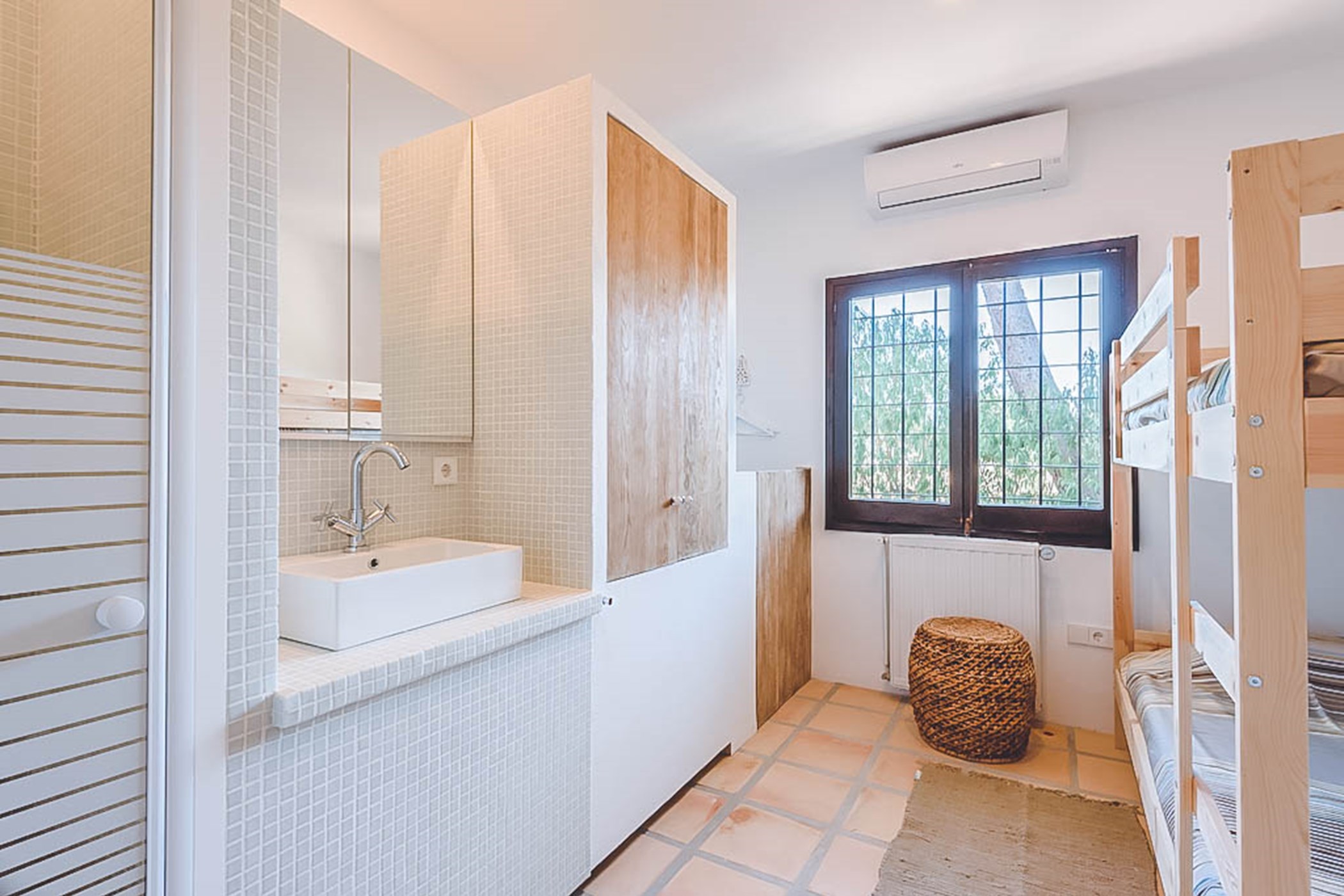 Each of the 6 bedroom suites at Can Sandra is of the highest standard, ensuring a comfortable and luxurious stay. The master bedroom offers a king-size bed, en-suite bathroom with a bathtub and shower, a sofa area, and sliding doors that open out onto a private terrace. For those seeking wellness and relaxation, there is also a fully equipped gym available, allowing you to maintain your fitness routine during your stay. This home is truly ideal for couples, families, and wellness retreats.
