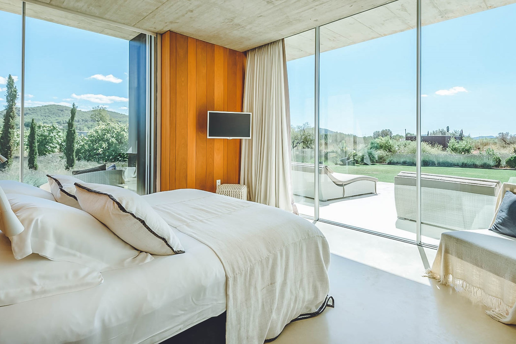 Indulge in the ultimate sunshine state of mind at Villa Bianca, a seriously sleek single-storey villa that embodies laid-back Californian architecture. With its blurred lines between indoor and outdoor spaces, this villa invites you to surrender to a state of total relaxation. Perfect for families or groups of friends, Villa Bianca features four bedrooms in the main house and an additional bedroom in a separate guesthouse.