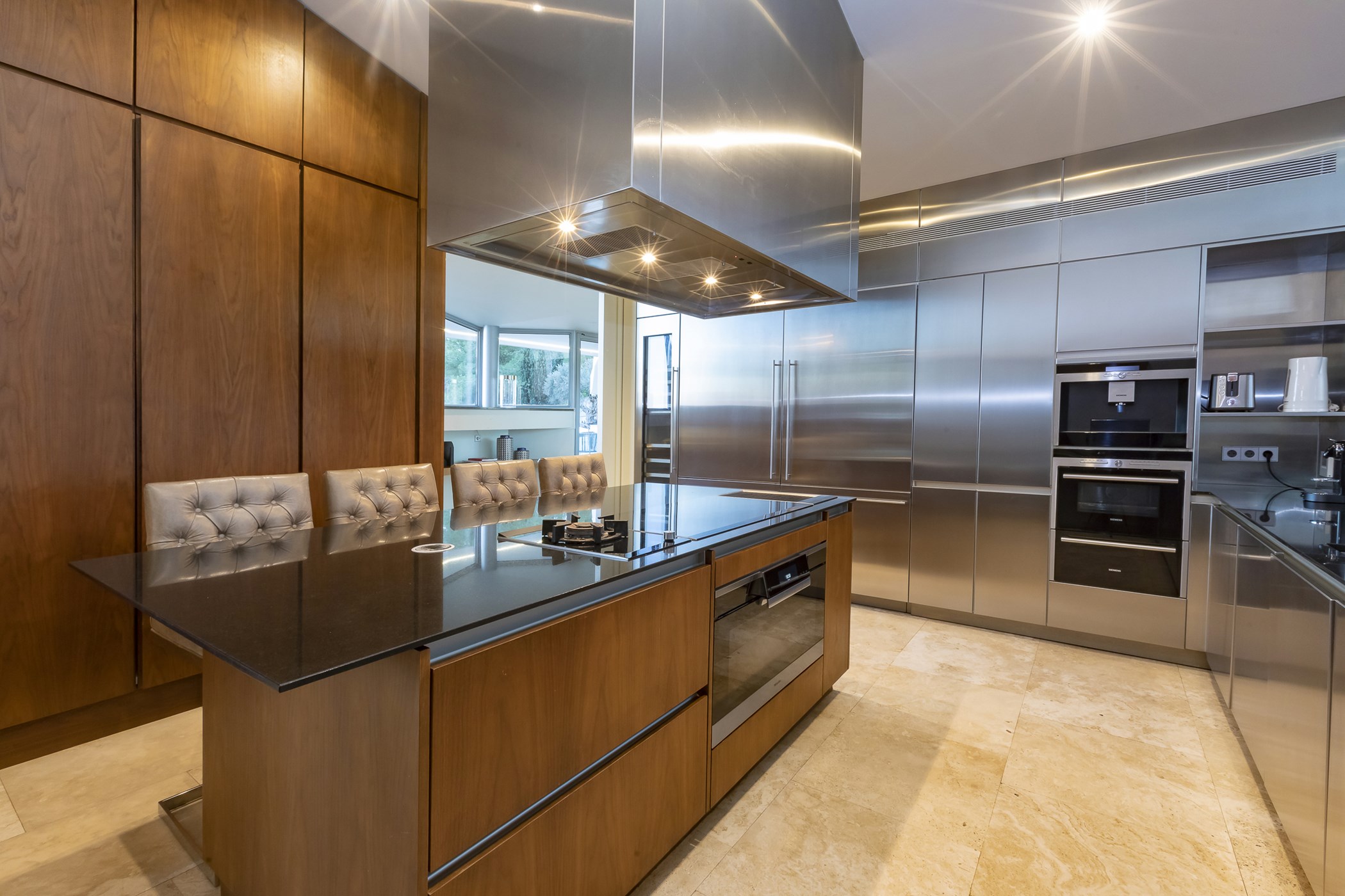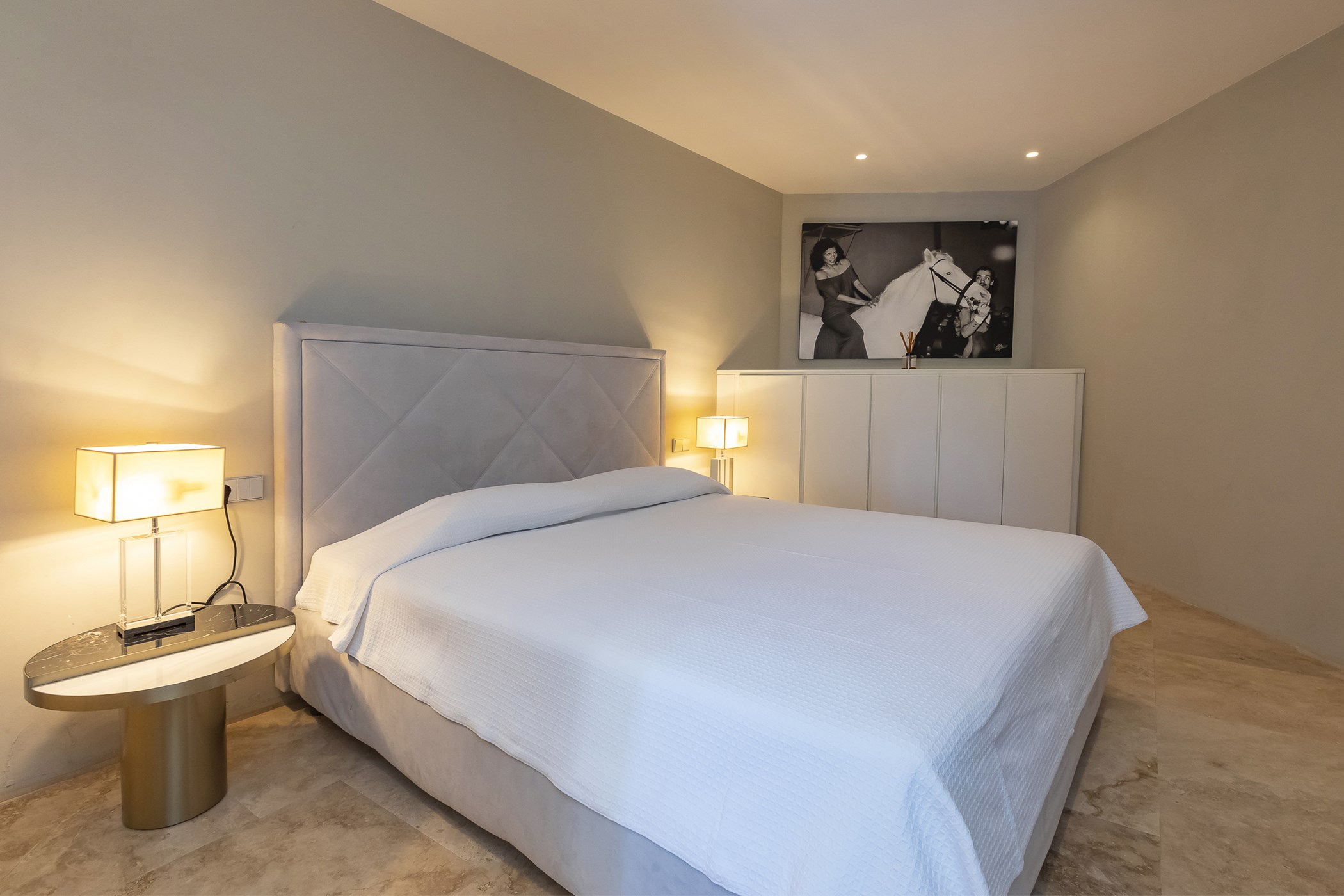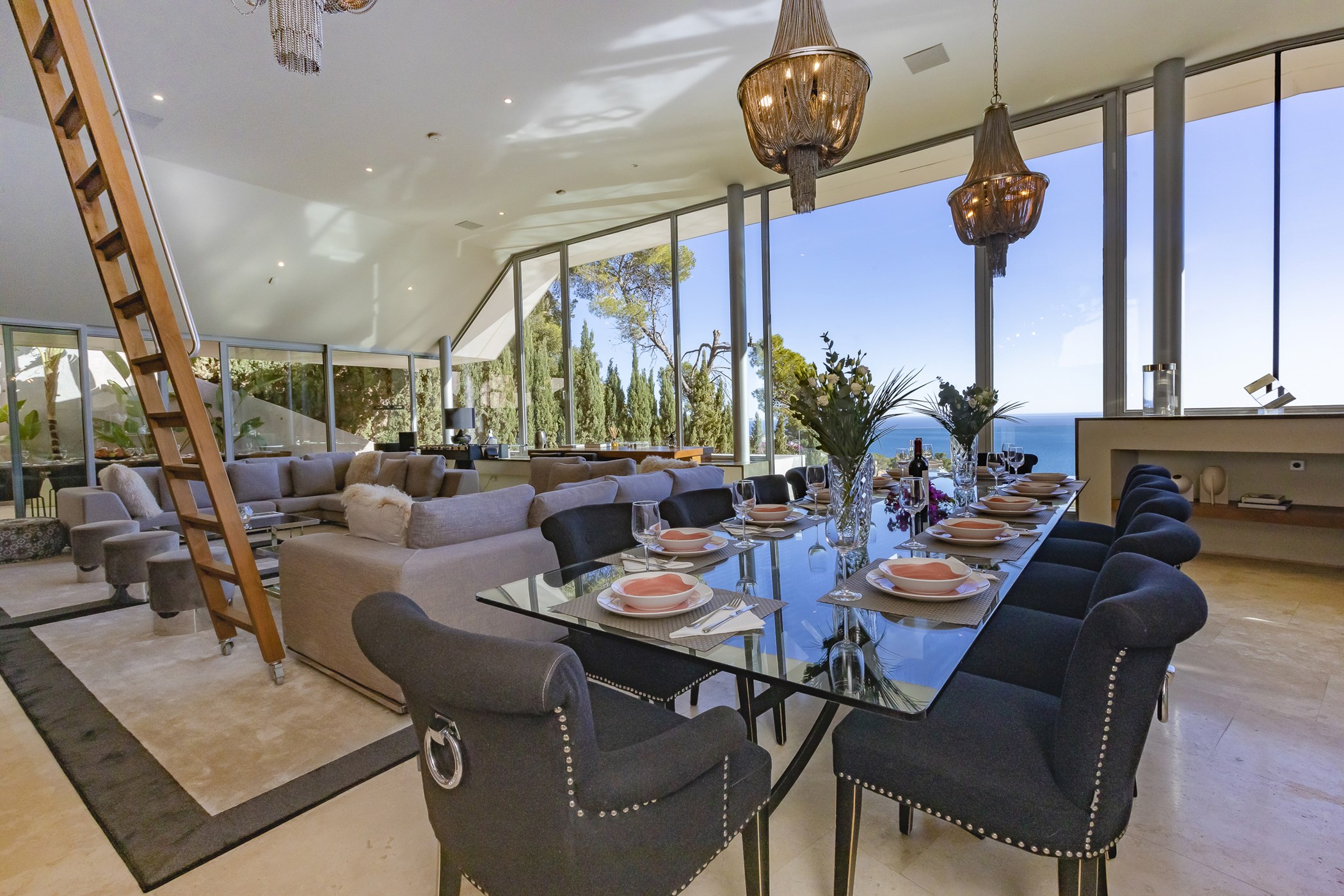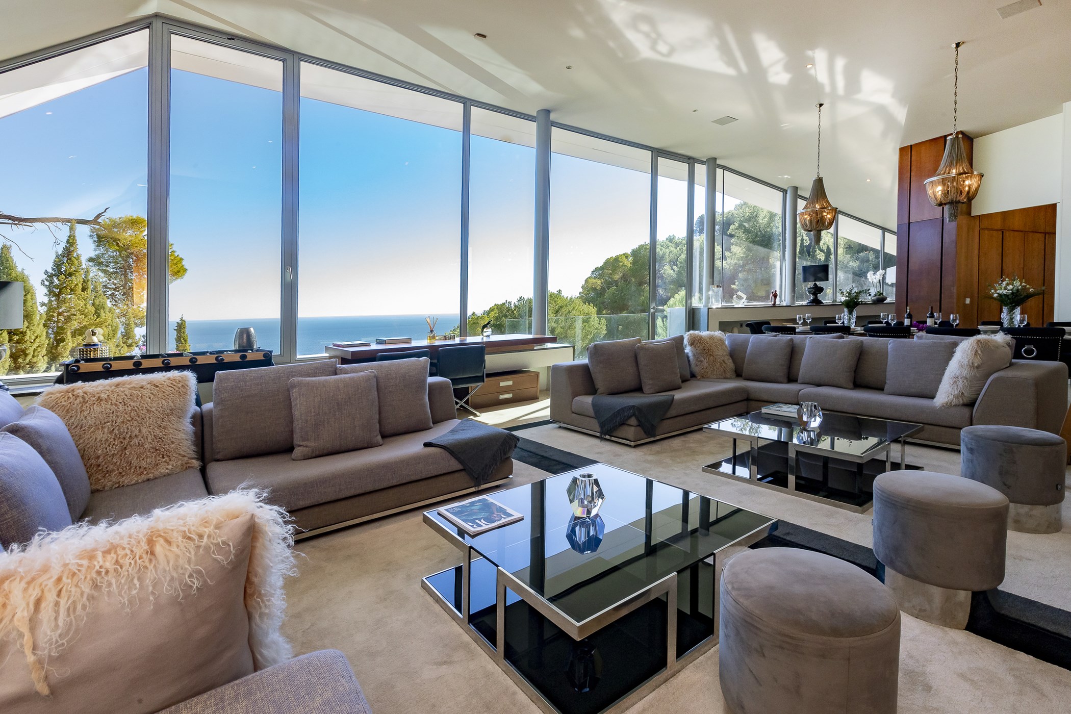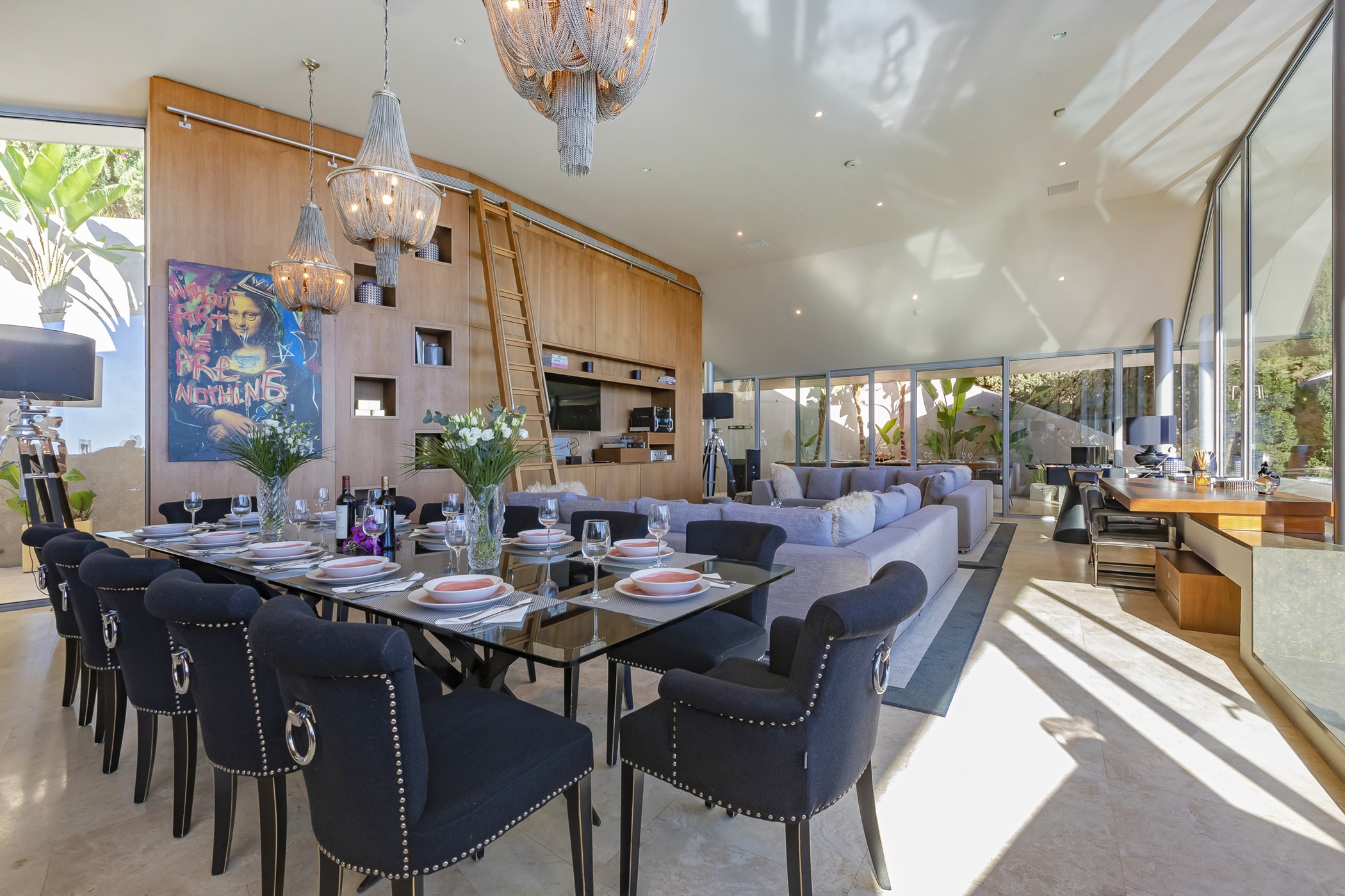 Enhanced with a sophisticated blend of classic and contemporary lines, Villa Estelle boasts interiors adorned with exquisite artwork and tastefully chosen furnishings. The main living area is flooded with natural light, offering a spacious, bright, and open-plan layout with high ceilings and an impressive glass bay window. The sleek ergonomic kitchen is fully equipped with high-standard appliances, perfect for culinary enthusiasts.