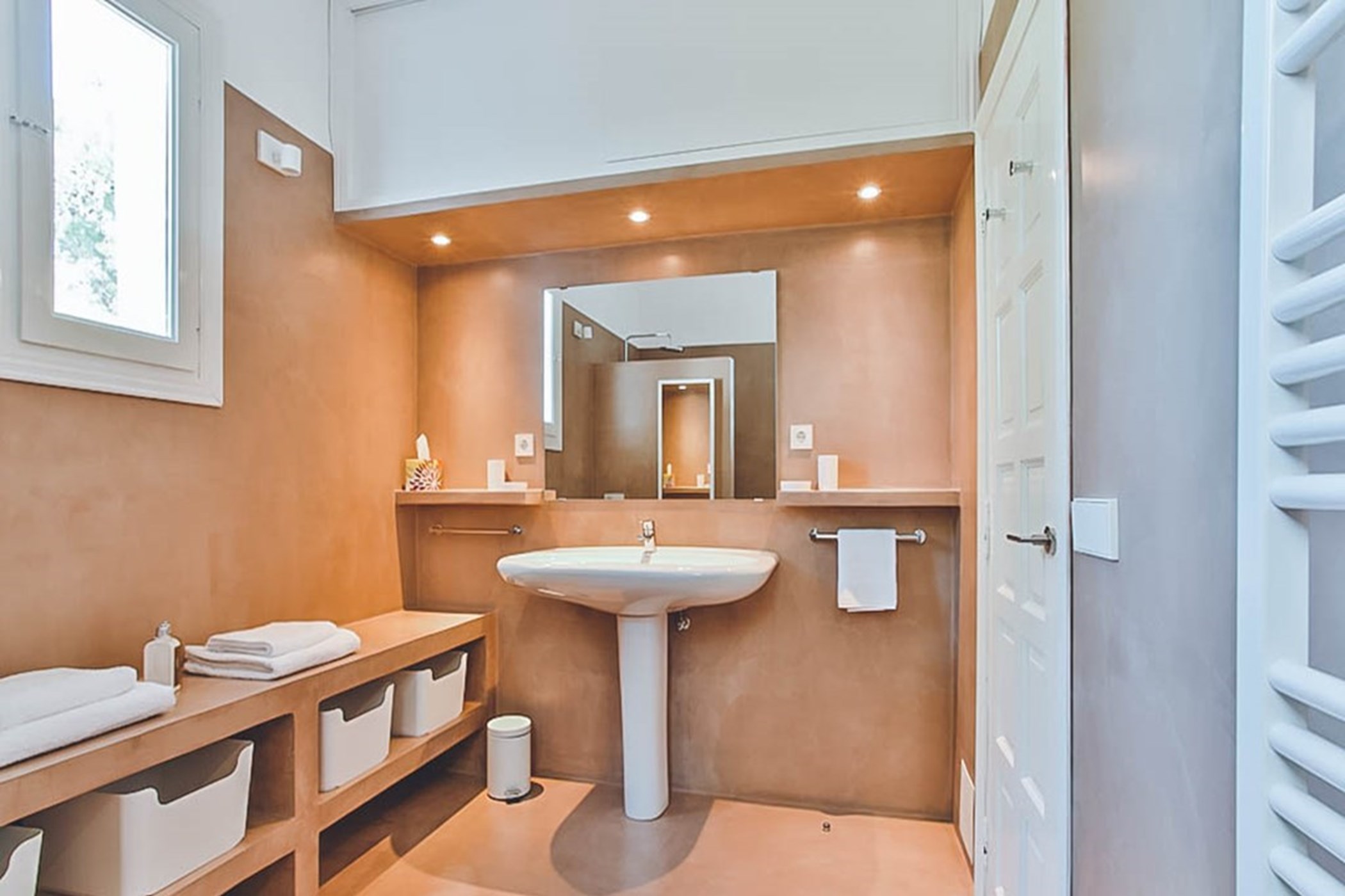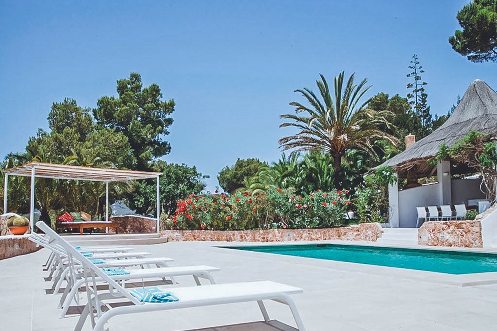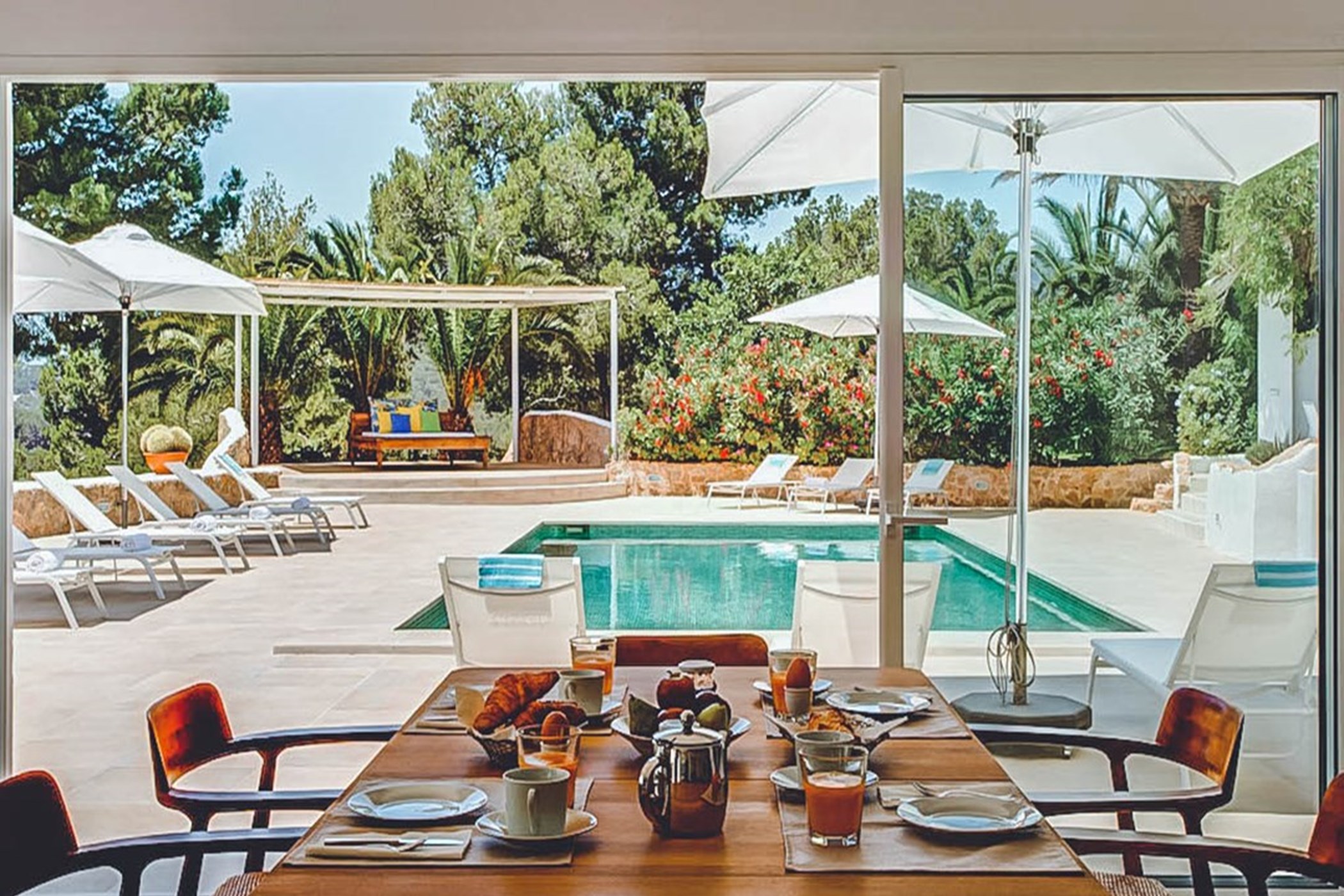 The two master suites at this villa are generous and versatile, each with private terraces allowing guests to fully immerse themselves in the sea views and bask in the Ibizan sun with added privacy. One bedroom even features its own kitchenette and ensuite bathroom. Every bedroom has been carefully styled to complement the theme of the main house.