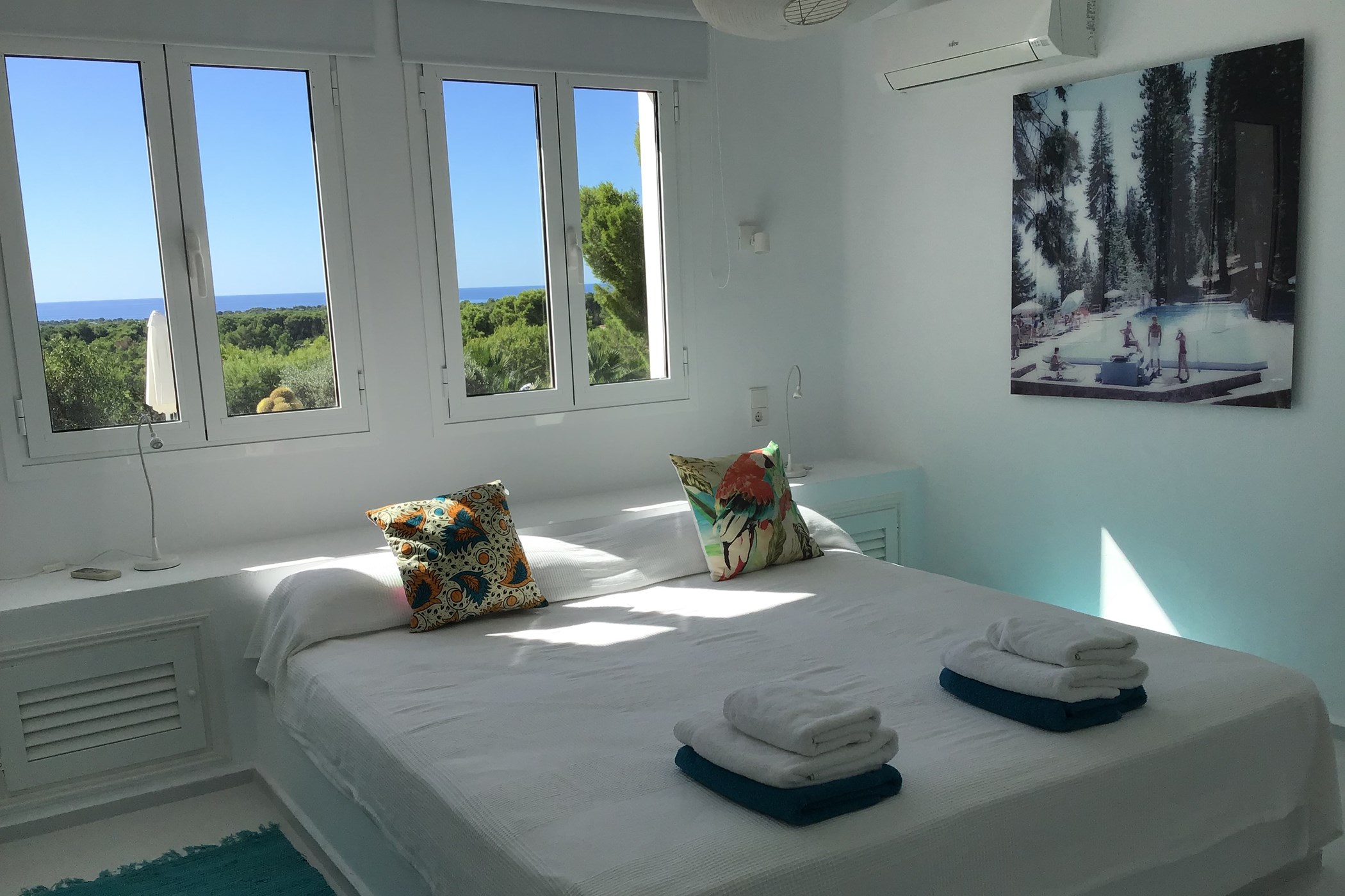 Recently renovated, Villa Esther Grande never fails to impress with its unique collection of Mid-Century vintage furniture and large ocean-themed photography prints adorning the whitewashed walls. Extensive glazing allows for an excellent quality of natural light all day long. The house features a spacious open-plan lounge, dining room, and a fully equipped kitchen. Thoughtful partitions and orientation cleverly invite guests to enjoy the shimmering sea views and connect with the coastal surroundings.