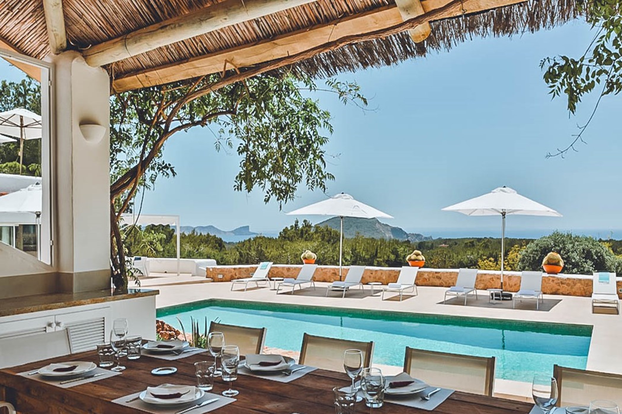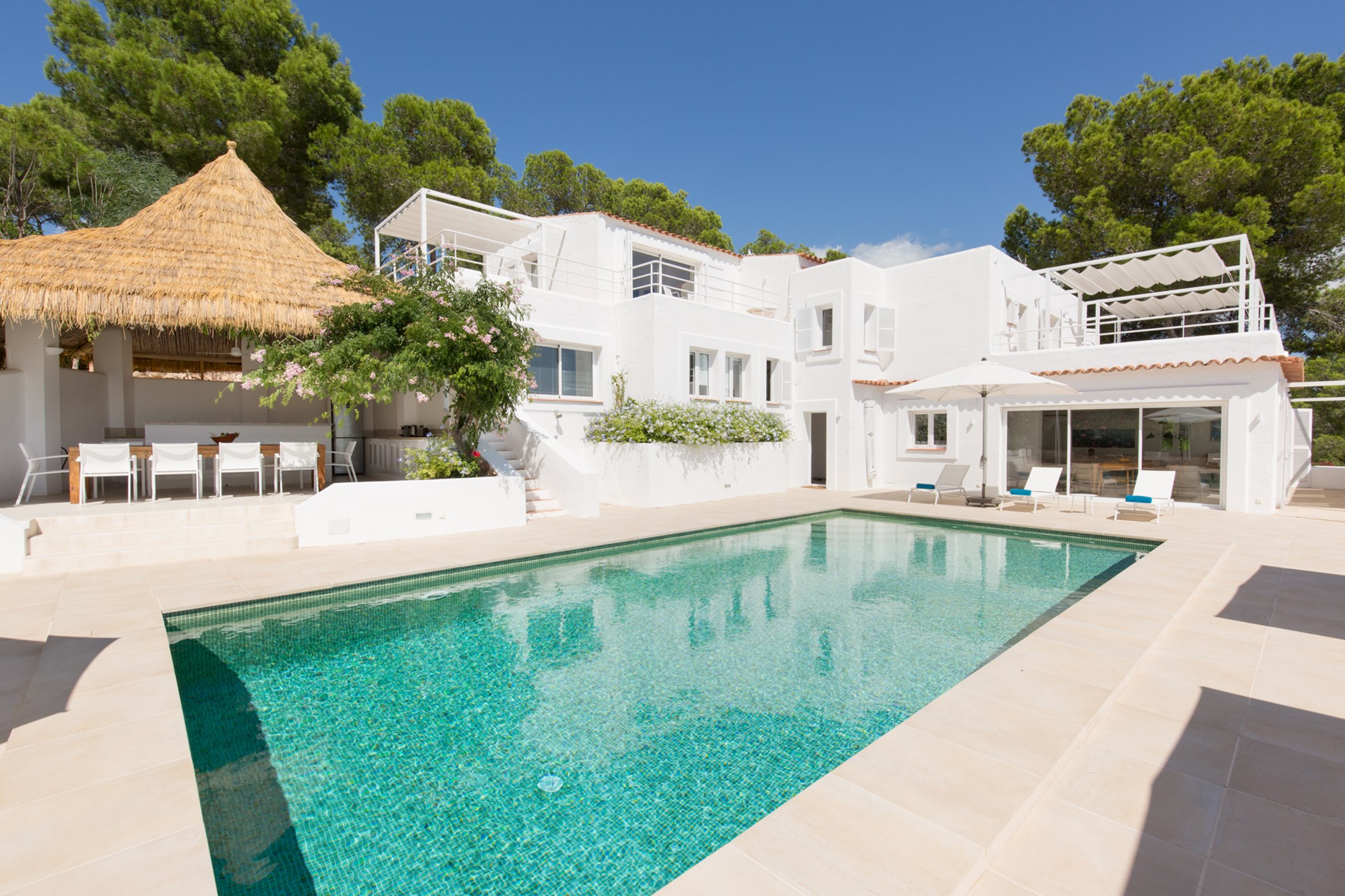 Villa Esther Grande offers a perfect blend of modern luxury, elegant design, and sweeping sea views, making it an ideal retreat for a memorable stay in Ibiza.