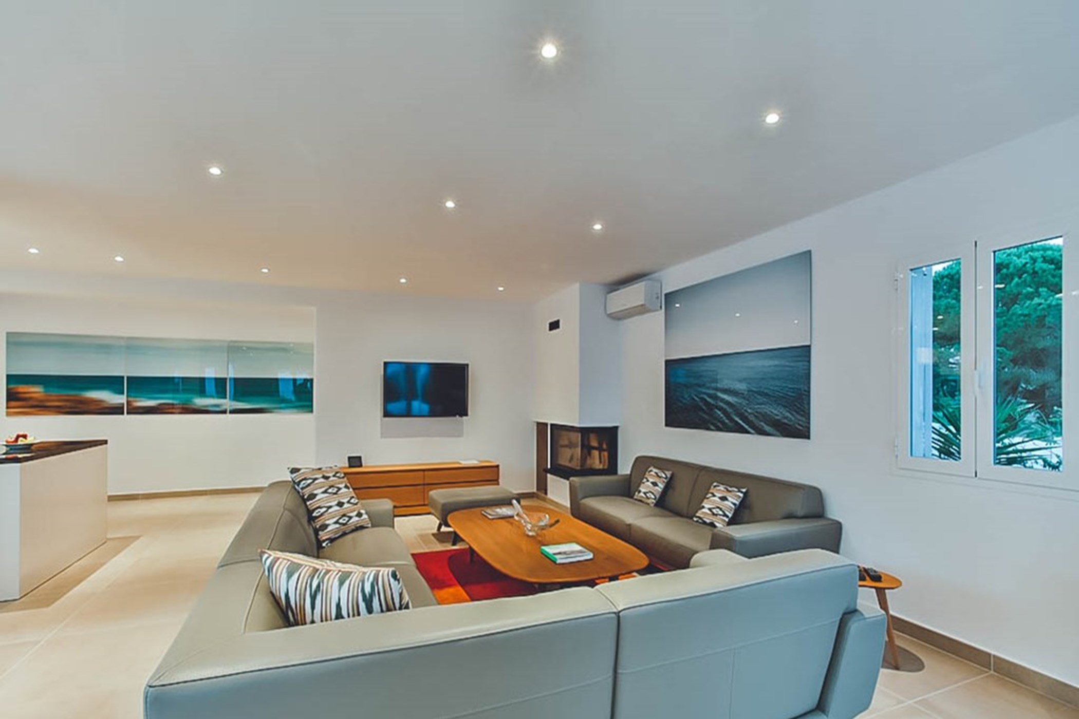 Stylish and elegant throughout, Villa Esther Grande exudes a relaxed ambiance with its abundance of lounge and entertainment areas. The elevated pool terrace offers breathtaking sea views, with sun loungers and chill-out areas generously spread around the expansive property. The outdoor kitchen, adjacent to a large dining table, serves as the heart of the summer vacation, perfect for al-fresco dining.